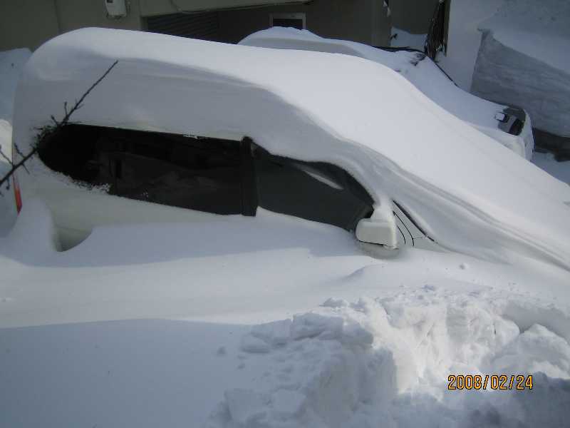 この私道での駐車は、習慣的にうちの敷地内にはみ出して行われ、普段は特に使わないスペースなので、はみ出す分には一向に構いませんが、万一、雪庇の落下による事故が発生した場合、こちらの管理責任が問われることにもなりかねません。